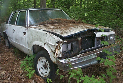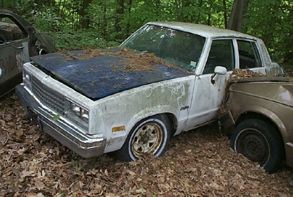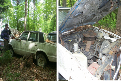 it still had 2 original Goodyear GT tires on it when I pulled it from the yard so it wasn't used very much before a minor accident forced it into the depths of this yard from 1990-2004!!) |
